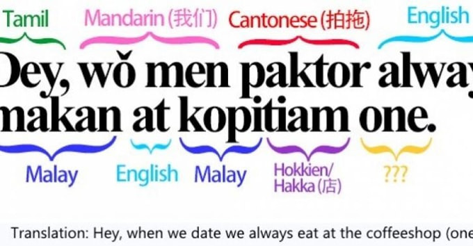 Liệu có ai có thể nói một câu nói sử dụng 5 ngôn ngữ khác nhau? Dù giỏi ngôn ngữ tới đây thì chắc cũng phải nói cho hết bằng một ngôn ngữ chứ? Thế nhưng tại Singapore, quả thực người dân sử dụng vài ngôn ngữ trong một câu nói, thậm chí nhiều hơn 5. Thông thường, người Singapore có thể sử dụng thành thạo ba ngôn ngữ là Anh, tiếng Trung phổ thông (Mandarin) và tiếng Malay.