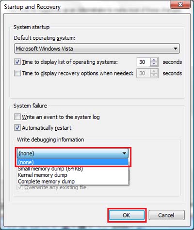 4. Tắt chức năng Memory Dump Files