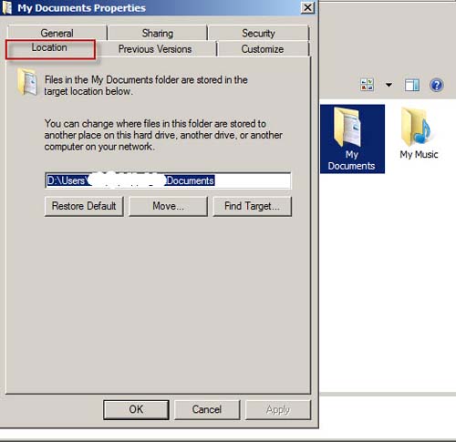 Bạn có thể thay đổi đường dẫn My Documents sang các phân vùng hoặc ổ đĩa cứng khác bằng cách như hình sau.