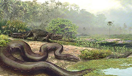 Ảnh minh họa loài rắn lớn nhất trong lịch sử trái đất của BBC.