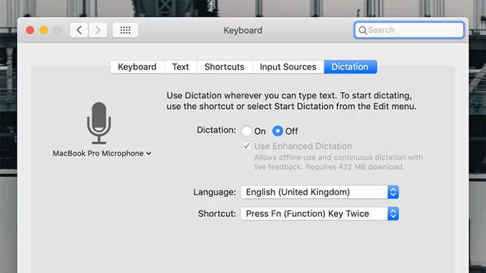 Để tiết kiệm thời gian và công sức khi nhập văn bản bằng tay, bạn có thể sử dụng giọng nói của mình và laptop sẽ ghi lại một cách tương đối chính xác những gì nó đã nghe được. Trên MacOS, vào menu Apple -> System Preferences -> Keyboard -> Dictation để kích hoạt tính năng nhập liệu bằng giọng nói. Phím tắt mặc định để bật tính năng đọc là nhấn 2 lần vào phím Fn, hoặc chọn Edit -> Start Dictation.