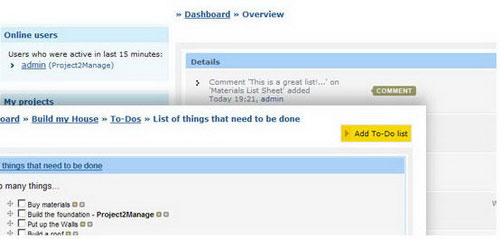 Project2Manage là một giải pháp để quản lý dự án và cộng tác đầy đủ các chức năng, và miễn phí. Bạn có thể thiết lập các quy luật, các quyền, giới hạn những gì các thành viên có thể nhìn thấy, có thể sửa đổi trong lịch làm việc của bạn. Nó cho phép quản lý nhiều dự án không giới hạn.
