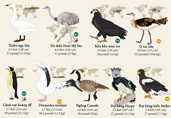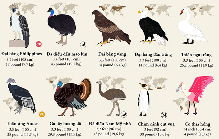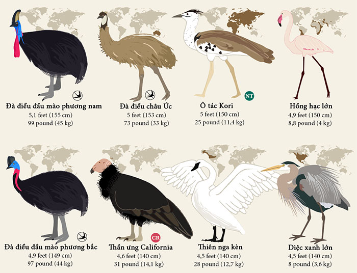 55 loài chim được xếp hạng từ lớn đến nhỏ trên thế giới