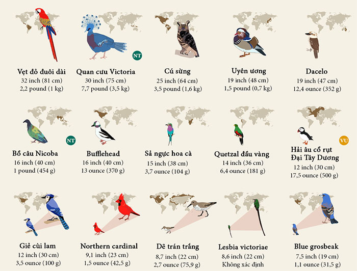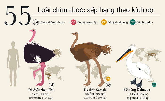 Để biết thêm thông tin, mời các bạn theo dõi infographic khám phá 55 loài chim được xếp hạng từ lớn nhất đến nhỏ nhất trên thế giới!