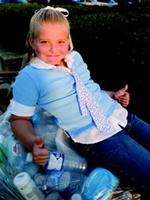 Katie Curry với đống vỏ chai mà cô bé thu gom được - (Ảnh Public Works) |
