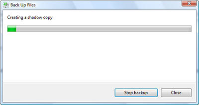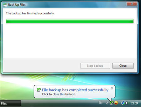 Để bắt đầu thủ tục này, kích vào nút Back up files và chương trình sẽ bắt đầu.
