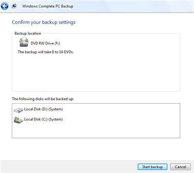 Trong cửa sổ cuối, chương trình sẽ hiển thị tóm tắt các thiết lập backup bạn đã chọn: vị trí đặt bản backup và ổ đĩa cần backup. Trong trường Backup location bạn sẽ thấy số lượng DVD cần dùng hoặc dung lượng ổ cứng cần thiết để lưu bản backup.