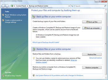 Tính năng Backup và Restore toàn bộ máy tính sẽ không có trong Windows Vista Home Basic hay Windows Vista Home Premium.
