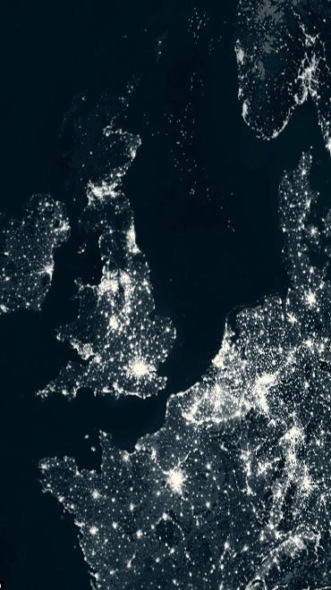 Ngoài London, ông còn thể hiện một số nước có mức tiêu thụ năng lượng khá cao như Mỹ, Nhật Bản - bức tường ánh sáng. Trong khi đó, một số nước thuộc thế giới thứ ba ở châu Phi, Nam Mỹ, vạt rừng rộng lớn của châu Á hầu như nằm trong bóng tối hoàn toàn.
