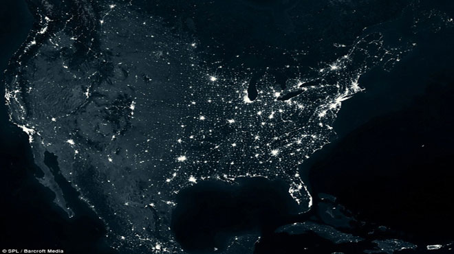 Hình ảnh chụp từ không gian Mỹ thể hiện tình trạng ô nhiễm ánh