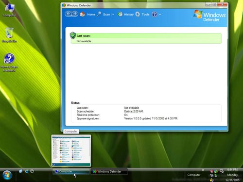 | Hình thu nhỏ (thumbnail) của ứng dụng đang đóng hiện ra trên thanh taskbar của Vista. |