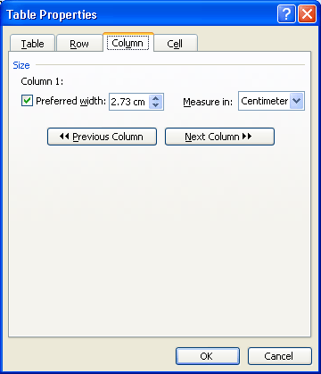 2. Xuất hiện hộp thoại Table Properties: