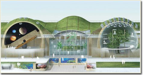 Bảo tàng mới của Viện khoa học California (tại San Francisco, Mỹ), dự kiến mở cửa vào mùa thu này, có bề ngoài phình ra trên mặt đất giống như một ly kem xanh khổng lồ, nhưng bên trong là một cấu trúc rất thân thiện với môi trường.