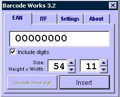 Để tạo mã vạch, bạn nhấn vào thẻ EAN hoặc ITF tùy thích. Sau đó nhập vào dãy số của mã vạch, nếu muốn mã vạch xuất hiện có thêm số thì bạn đánh dấu chọn vào mục "Include digits" và điều chỉnh kích cỡ cho phù hợp trong ô Size Height x Width. Cuối cùng nhấn nút Insert để chèn mã vạch vào tài liệu.
