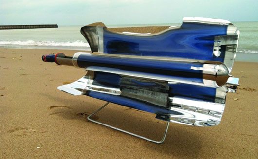 Ống nấu trung tâm được làm từ thủy tinh borosilicate có khả năng chịu được sốc nhiệt. Trong lòng ống lót đồng, thép không gỉ và nitrile nhôm để hấp thụ và dẫn nhiệt từ tia nắng mặt trời tốt hơn. Ống có chiều dài 0,6m, đường kính 5cm, đủ để chứa khoảng 1,4kg thực phẩm hoặc 1,6 lít chất lỏng. Bộ khung bếp được thiết kế chắc chắn, có thể nghiêng xuống, tạo thuận lợi cho việc pha chế cà phê và những đồ uống nóng khác.