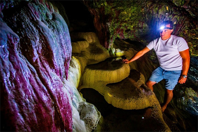 Những vách đá bên trong hang động có nhiều màu sắc tự nhiên.
