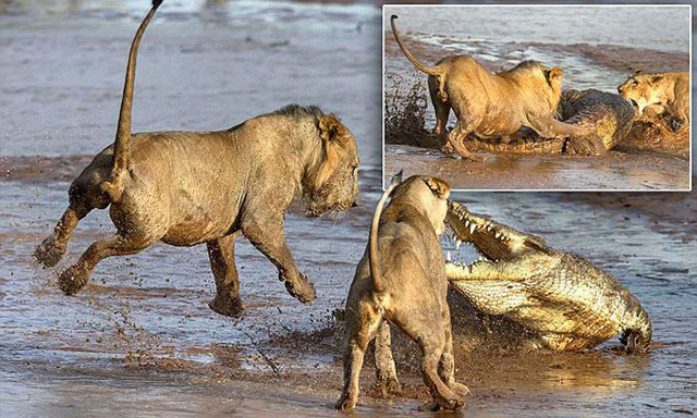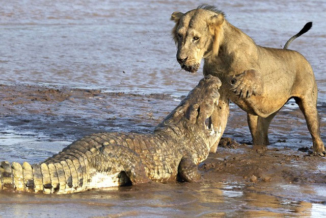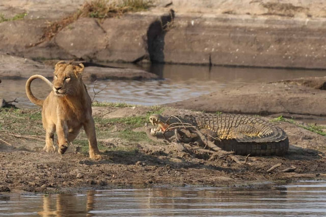 Sự cạnh tranh giữa sư tử và cá sấu tập trung vào lãnh thổ chung của chúng.