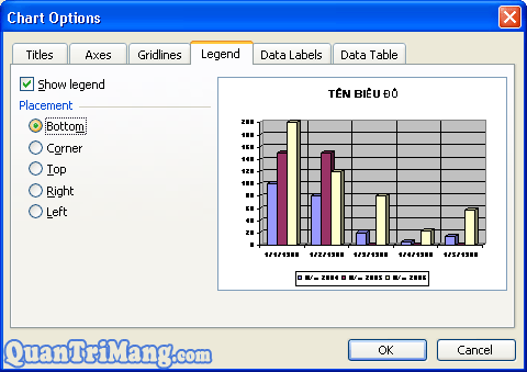 Placement: Vị trí đặt: Bottom: Dưới biểu đồ