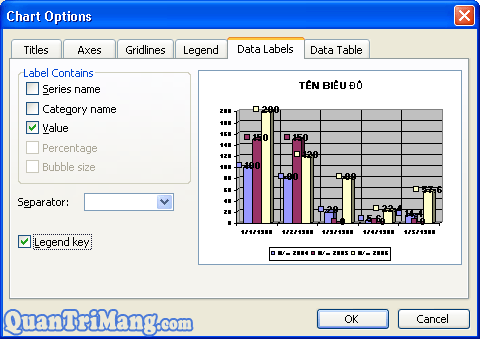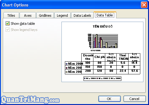 => Hộp thoại Chart Option xuất hiện: