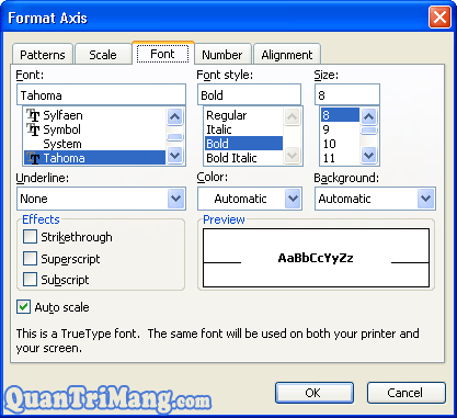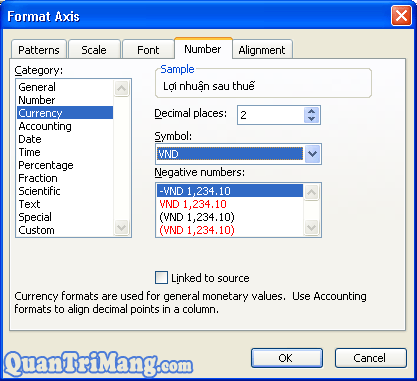 Kích chuột phải vào vùng chú giải=> Xuất hiện hộp thoại Format Axis