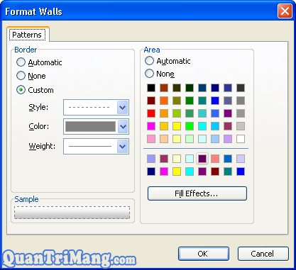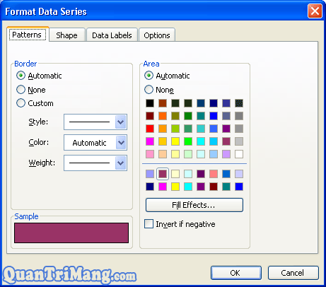 Bạn có thể kích vào nút Fill Effect… để chọn các loại màu nền thú vị hơn có định dạng là: ô kẻ chấm, sử dụng 2 màu sắc, thậm chí sử dụng cả ảnh có sẵn trên máy tính để làm màu nền cột dữ liệu.