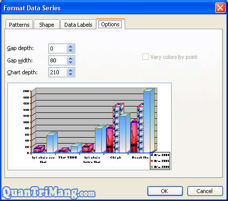 3. Thẻ Shape: Hình dáng cột dữ liệu: