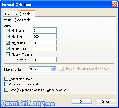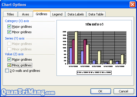 þ Value (Z) axis: Hiển thị giá trị trục Z.4. Thẻ Gridlines: Thay đổi đường kẻ mặt đáy biểu đồ.