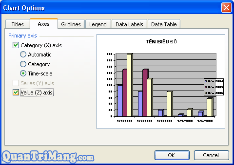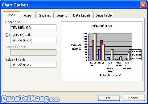 - Series (Y) axis: Tiêu đề trục Y