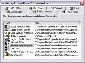 Ngoài ra, bạn có thể sử dụng tiện ích miễn phí Startup Control Panel (www.pcworld.com.vn, ID: 49984), có khả năng hiển thị tất cả ứng dụng tự động khởi động trên máy tính (ngoại trừ một số ứng dụng thật sự cần che giấu). Sau khi đã tải về và cài đặt tiện ích này, nhấn chuột vào Start > Control Panel > Startup và chọn một trong những thẻ Startup. Bỏ đánh dấu chọn đối với những chương trình không cần thiết để ngăn chúng tự khởi chạy trong quá trình khởi động Windows. Các chương trình bị cấm sẽ xuất hiện trong thẻ Delete, vì thế bạn có thể sử dụng lại dễ dàng nếu cần.