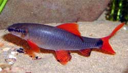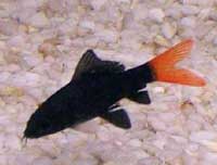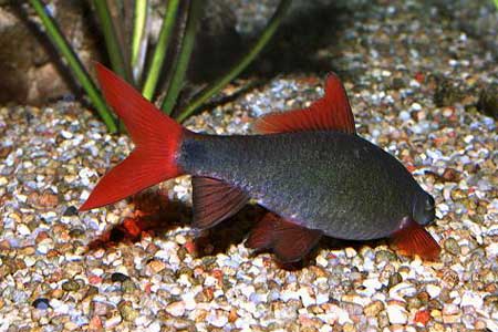 Được gọi là "cá mập" bởi chúng có bản lĩnh hung hãn và có cái vây lưng dài nhô lên trông như những con cá mập thu nhỏ, chúng có tên là Labeo bicolor, toàn thân là màu đen trừ đuôi có màu đỏ tươi, kích thước dài tối đa là 12cm.