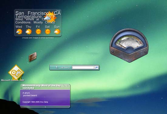 Kế đến là các Widget. Cơ bản cũng giống như các đối tượng (Object), tuy nhiên thực sự chúng chứa các ứng dụng như các file .exe chạy trọng không gian nhớ riêng. Chính vì vậy chúng có khả năng di chuyển dễ dàng đến các máy tính khác. Một số các đối tượng và Widget này rất hữu dụng, tuy nhiên có số lại đơn giản và một số thực sự không có mục đích thiết thực.