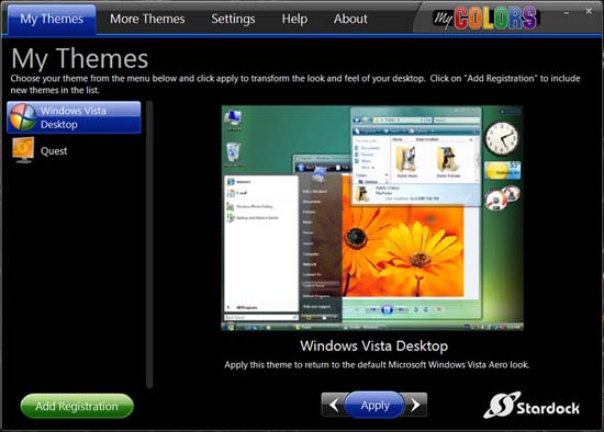 Cuối cùng nhưng không phải là thua kém đó chính là ứng dụng mới nhất trong bộ Object Desktop—MyColors. MyColors thực sự là một ứng dụng cho phép kết nối các thành phần khác cùng nhau – các biểu tượng và âm thanh, WindowBlinds theme, màu sắc,… Người dùng thông thường cũng có thể dễ dàng sử dụng và thay đổi toàn bộ desktop của họ.