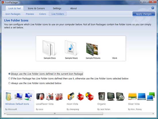 Một tính năng đặc biệt của IconPackager là khả năng thay đổi "Live Folders" trong Vista của nó.