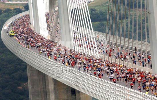 Hàng năm, thường diễn ra một cuộc thi chạy marathon lớn qua cây cầu này.