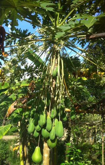Điều kỳ lạ theo nhiều người địa phương là những quả đu đủ không mọc trên cuống như quả ở cây đu đủ mà họ thường thấy, mà quả mọc trên một dây rất dài từ phía ngọn cây xuống.