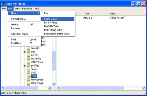 Tạo một Key bằng cách vào Edit -> New -> String Value