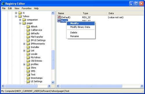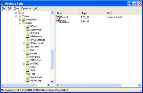 Trong cửa sổ Registry Editor, bạn chọn mục HKEY_CURRENT_USER -> Software -> Yahoo -> Pager -> Test