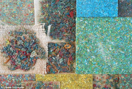 Sau khi phát hiện ra khả năng "tái chế" màu tuyệt vời của những sinh vật này, Schreuder đã tập hợp phân của chúng và đưa vào một chiếc có thiết kế đặc biệt để hòa trộn và ép nén thứ "chất thải" này vào các viên gạch lát có cùng màu sắc.