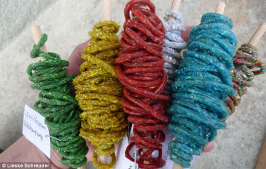 Theo nữ họa sĩ Hà Lan, phân ốc sên cũng có thể được ép nén vào một cái khuôn để tạo ra những sợi dây sặc sỡ, dày 5mm. Để tạo ra một mét dây này, cô sẽ mất tới gần 1 giờ đồng hồ và khoảng 6 gram phân - lượng chất thải tổng cộng của 9 con ốc sên trong 5 ngày.