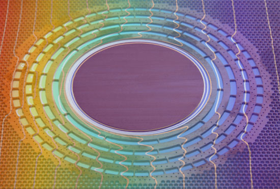 Khu vực này được làm bằng hợp chất đồng và silicon, với tên gọi PDMS. Xung quanh đĩa đồng này là những vòng đồng đồng tâm. Mỗi vòng này được nối với nhau bằng một vài nan đồng mỏng. Cấu trúc này cho phép dòng nhiệt chảy nhanh quanh các vòng đồng nhưng lại chảy chậm lại khi qua khu vực trung tâm. Công nghệ này sau này có thể được dùng để giữ các thiết bị điện không bị quá nóng.