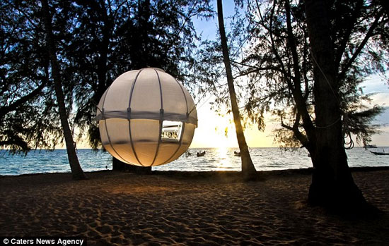 Chiếc giường kén nhộng sẽ giúp bạn có được buổi sáng tuyệt vời như vậy. Nhờ có hệ thống dây treo buộc chắc chắn giữa những thân cây, chiếc giường độc đáo được làm từ nhôm với khối lượng vỏn vẹn chỉ có 60kg này có thể chịu được sức nặng lên tới 1 tấn.