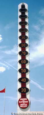 Chiếc nhiệt kế lớn nhất thế giới cao 40,8 mét, là hình tượng biểu trưng của kỷ lục nhiệt độ cao ở nước Mỹ tại Thung lũng chết là -560oC vào năm 1913. Và nó nằm trên quán cà phê mang tên Bun Boy của Herron ở Baker, một thị trấn nhỏ gần bang Nevada, “Cổng vào Thung lũng chết”.