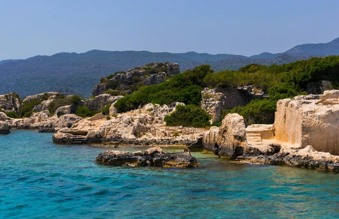 Simena, Thổ Nhĩ Kỳ. Từng bị phá hủy bởi một loạt trận động đất, những gì còn lại của nền văn minh Lycian này đang là một bí mật với của du khách ngày nay. Trong khi một số công trình kiến trúc đáng kinh ngạc của Simena, bao gồm cả những ngôi mộ trang trí công phu, nhô lên trên mực nước, hầu hết các tàn tích của thành phố cổ bị chìm nằm dưới bề mặt ngoài đảo Kekova không có người ở.