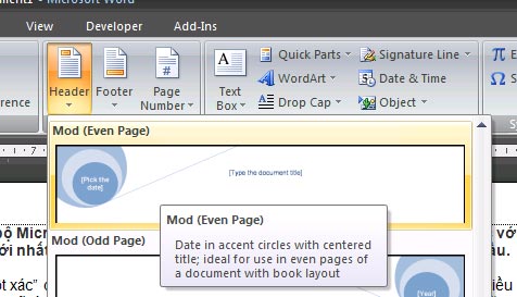 Bây giờ bạn có thể chèn Header / Footer cho các trang chẵn trên một trang chẵn bất kỳ, chèn Header / Footer cho các trang lẻ trên một trang lẻ bất kỳ.