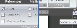 Một cách khác để cho thước kẻ hiện ra là nhấn chuột vào nút View Ruler ở phía trên thanh cuộn dọc.