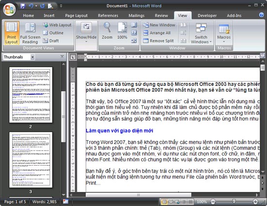 Thật vậy, bộ Office 2007 là một sự “lột xác” cả về hình thức lẫn nội dung mà chắc chắn bạn sẽ phải tốn khá nhiều thời gian tìm hiểu về nó. Tuy nhiên khi đã làm chủ được bộ phần mềm này rồi thì bạn sẽ cảm thấy công việc văn phòng của mình trở nên nhẹ nhàng hơn trước nhiều vì bố cục chương trình được sắp xếp lại hợp lý, các công cụ hỗ trợ tự động sẵn sàng giúp đỡ bạn, những tính năng mới đáp ứng tốt hơn nhu cầu của bạn...
