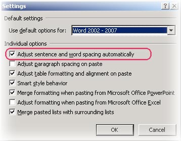 - Bỏ dấu chọn ở hộp kiểm Adjust sentence and word spacing automatically. Nhấn OK hai lần để đóng các hộp thoại lại.