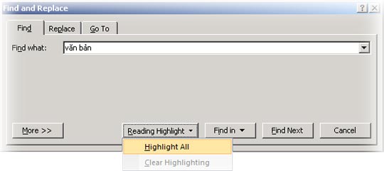 Để dễ dàng nhận biết các cụm từ tìm được, bạn có thể tô sáng nó trên màn hình (không tô sáng khi in ra).