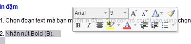 1. Chọn đoạn text, di chuyển con trỏ chuột vào để xuất hiện thanh công cụ Mini.
