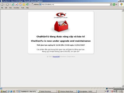 Thông báo website đang nâng cấp lúc 23h15’ ngày 12/2 trên chodientu.vn. (Nguồn: VNN) |
